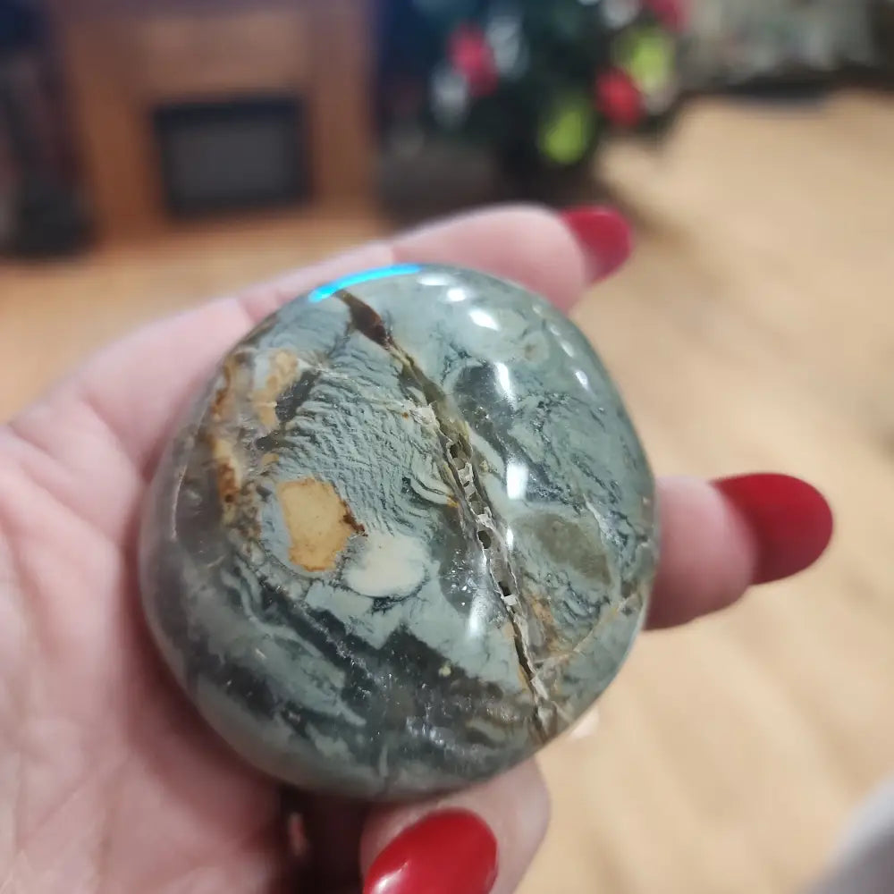 ššŖ½ Green Ibis Agate Palmstone ā Growth, Harmony and Emotional Healing āØ